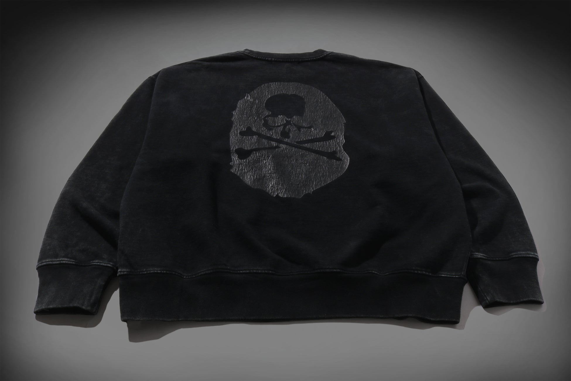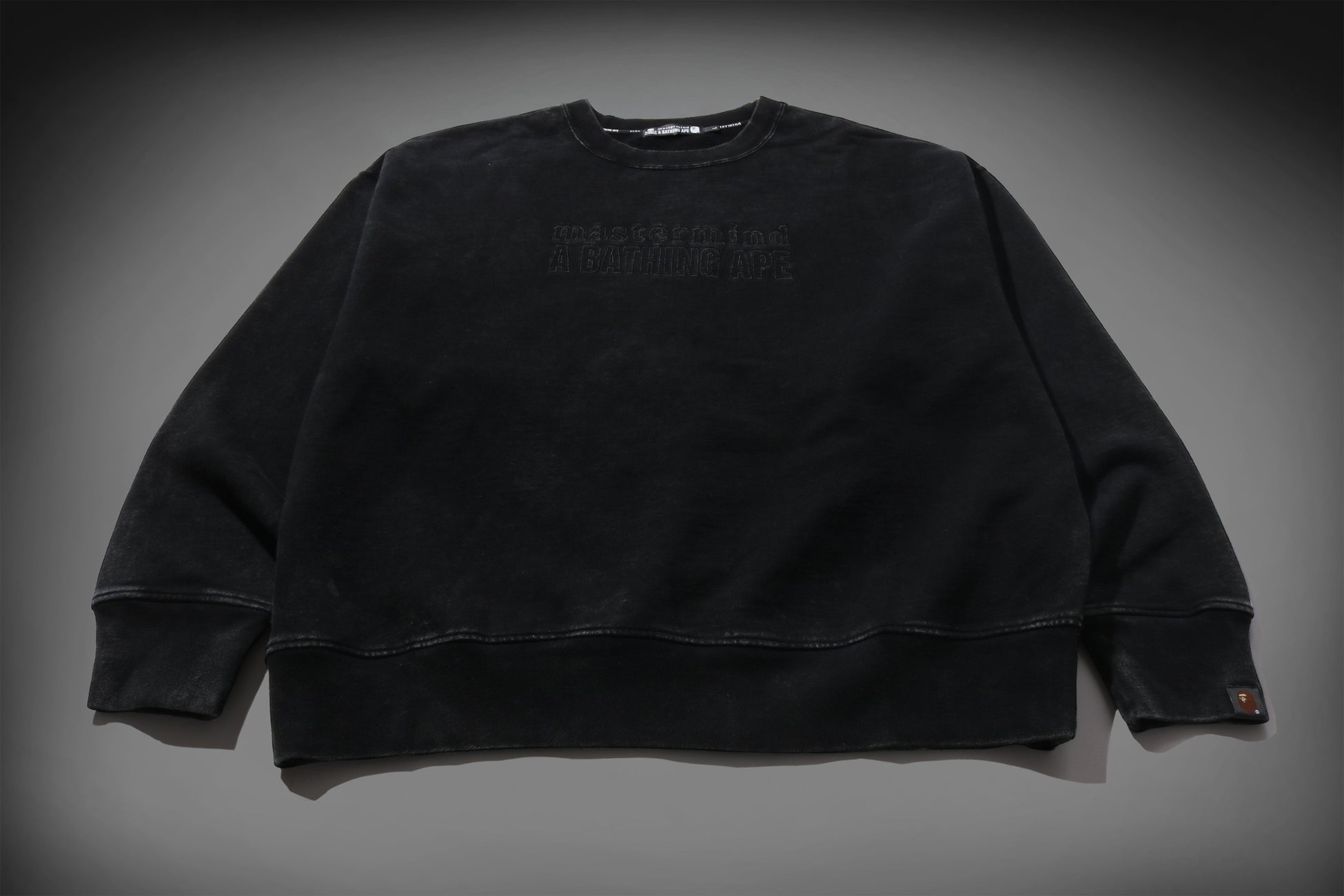 クルーネックスウェットは、フロントに“mastermind A BATHING APE®︎”を刺繍。