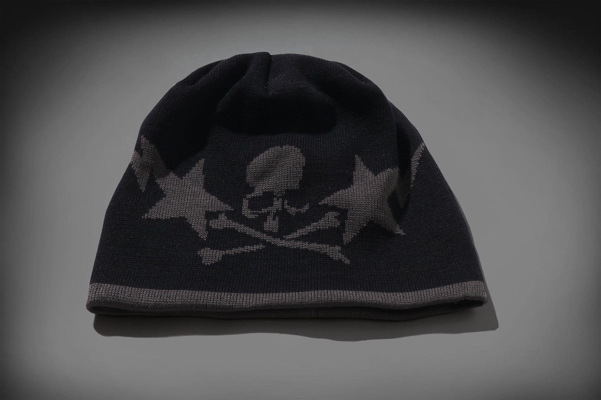 ニットキャップはクロスボーンスカルとSTAを組み合わせたコラボレーションならではのロゴをジャガードで表現。