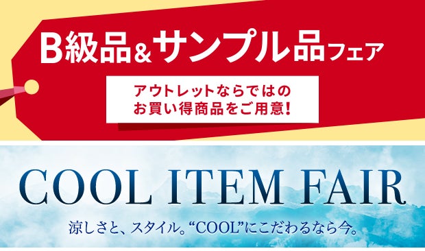 セール期間中、着用には問題ないほつれや、小さいキズがついてしまった“B級品”、試作品や展示品の“サンプル品”などを対象店舗で販売する「B級品&サンプル品フェア」、初夏に向けた清涼アイテムを紹介する「COOL ITEM FAIR」を開催。また、夏野菜や旬のフルーツを使用したおすすめグルメが楽しめる「夏の味覚フェア」も開催。