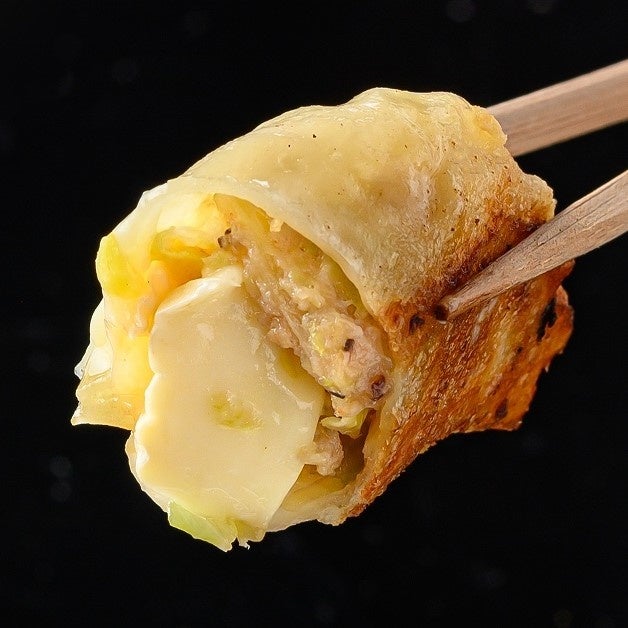一口食べるとチーズがとろり。北海道産のコクのあるカマンベールチーズを餃子にしました。チーズにあわせて、ドライトマトとブラックペッパーをプラス。前菜として、ビールやワインにぴったりの旨味あふれる餃子です。