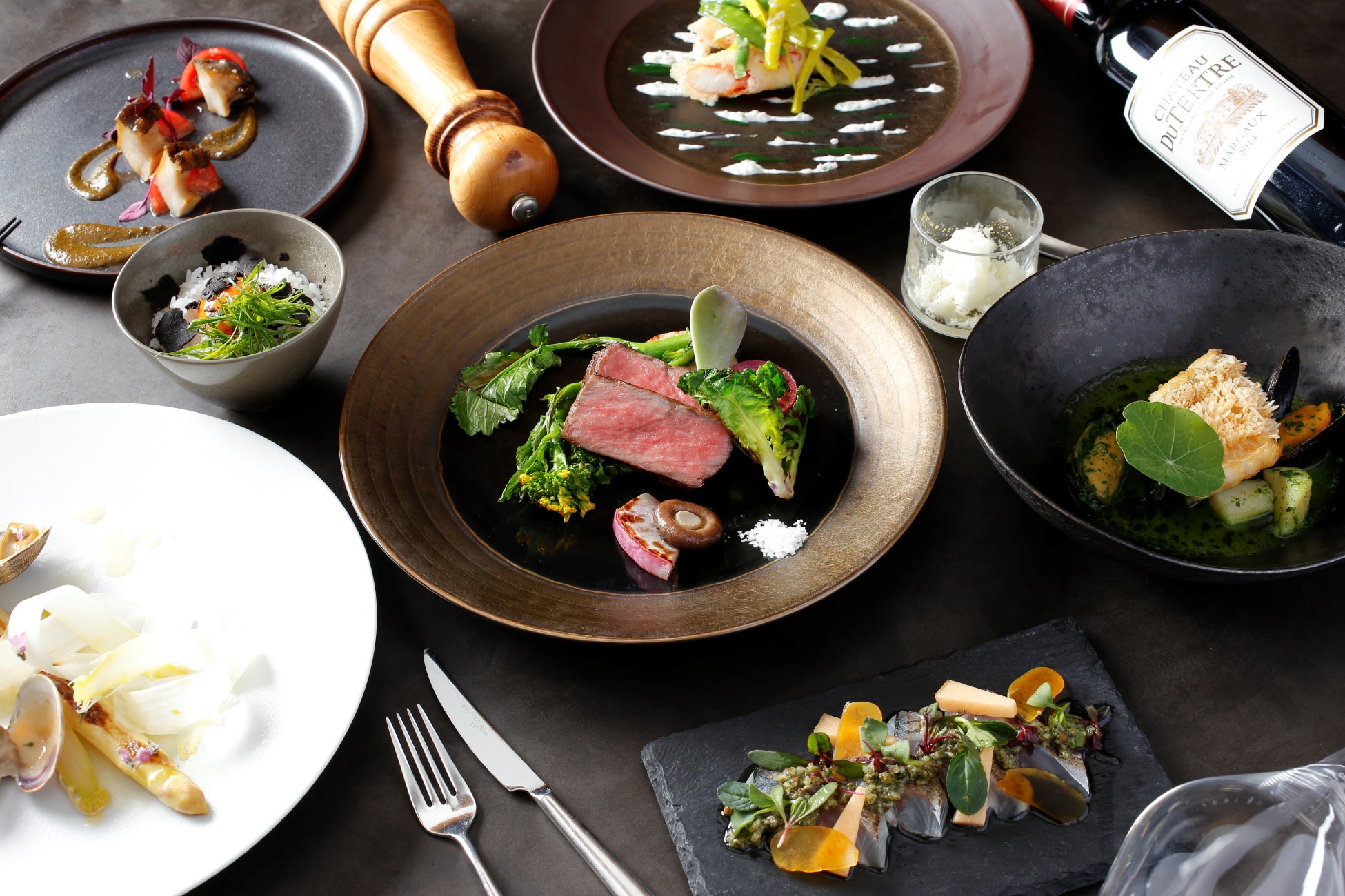「白金然荘」は、月ごとに異なるお品書きで47都道府県から一つの産地を選定し、その土地の食材や調理法を取り入れたシェフオリジナルのワンコースをご提供しております。今回は中でも人気の高い「北海道」をテーマにしたコースをご用意いたしました。登美の丘ワイナリーのフラッグシップワイン「登美 赤」や希少価値が高い「登美の丘シリーズ」など日本ワイン6種をペアリング。日本ワインの魅力を最大限感じていただける、オリジナルコースをご提供いたします。