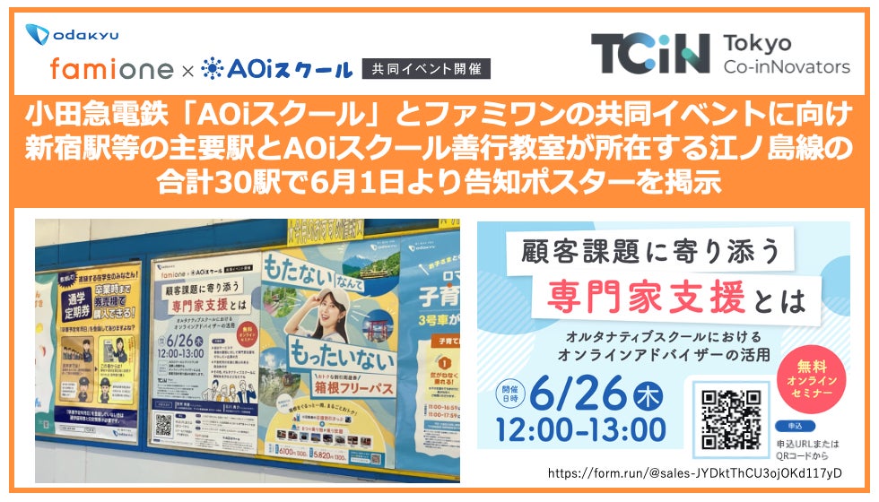 小田急電鉄「AOiスクール」との共同イベントに向けて、6月1日から小田急線の新宿駅等の30駅でポスターを掲示