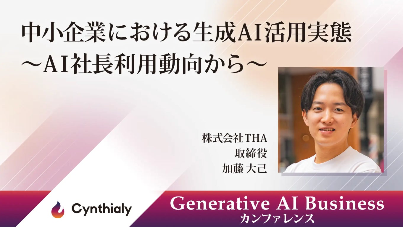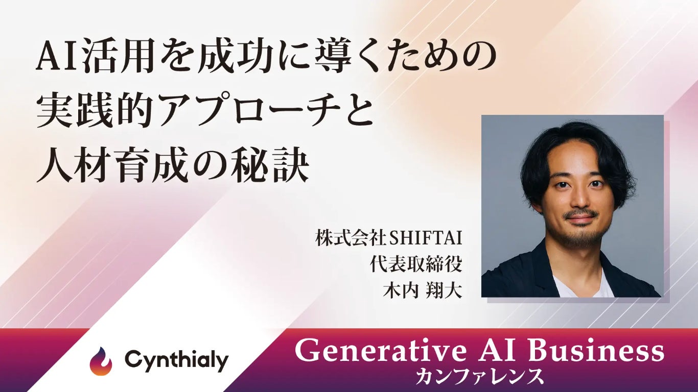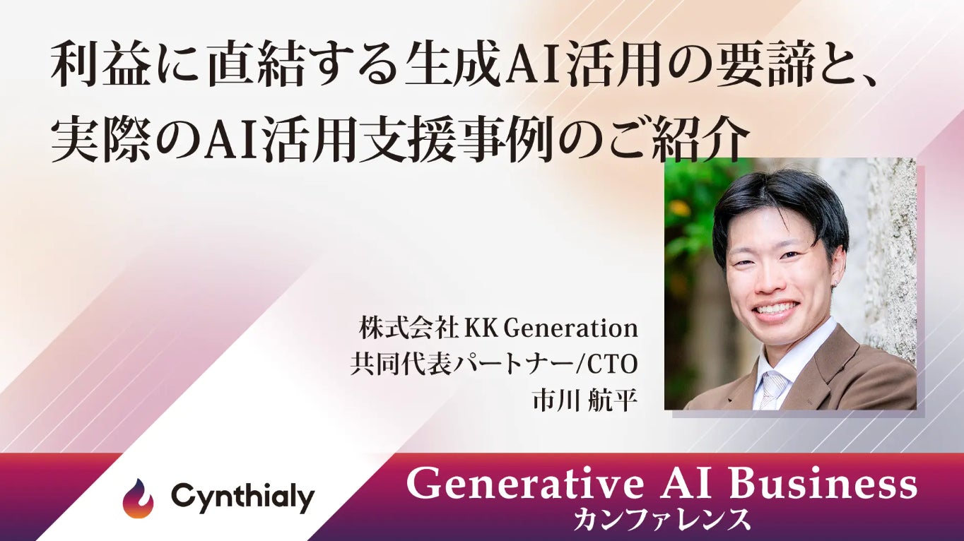 株式会社イノベーション(東証グロース 証券コード3970)のグループ会社である、株式会社Innovation & Co(本社:東京都渋谷区、代表取締役社長:齊藤和馬、以下「Innovation & Co」)は、法人向けの生成AI人材育成・導入変革支援を行うCynthialy株式会社(所在地:東京都渋谷区、代表取締役:國本知里、以下「Cynthialy」)と共催で、2024年10月25日(金)に最新の生成AI技術の活用方法や実際のビジネス事例を学ぶためのイベント「Generative AI Business カンファレンス」を開催することをお知らせいたします。