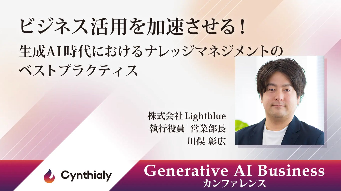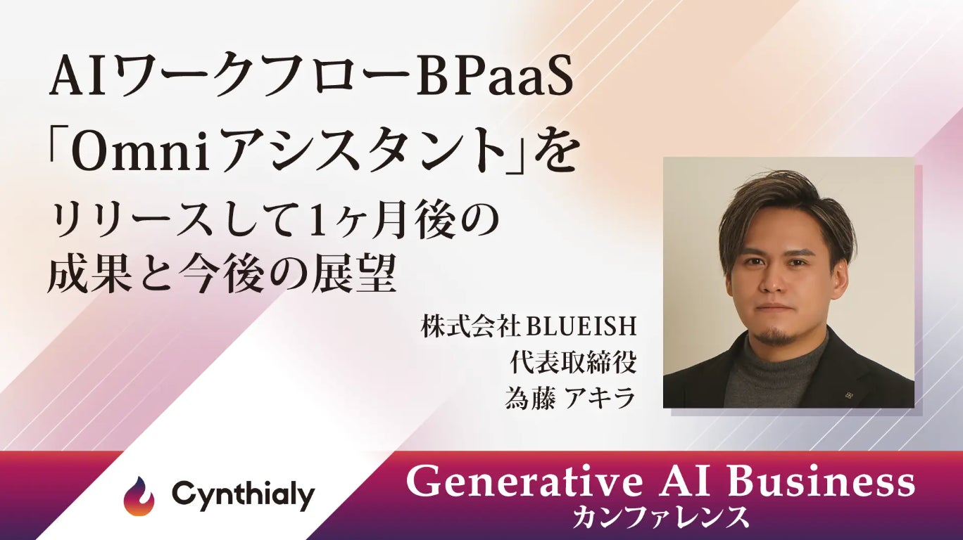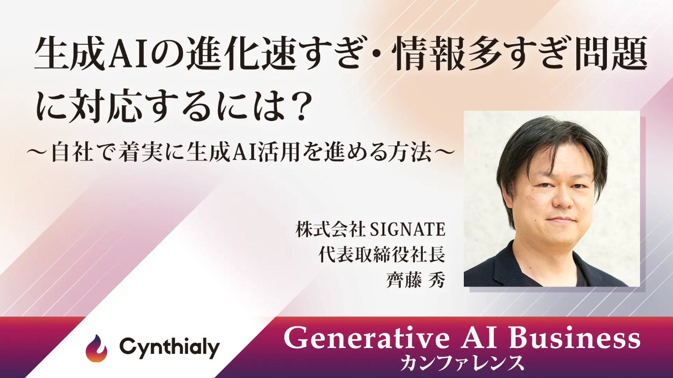 株式会社イノベーション(東証グロース 証券コード3970)のグループ会社である、株式会社Innovation & Co(本社:東京都渋谷区、代表取締役社長:齊藤和馬、以下「Innovation & Co」)は、法人向けの生成AI人材育成・導入変革支援を行うCynthialy株式会社(所在地:東京都渋谷区、代表取締役:國本知里、以下「Cynthialy」)と共催で、2024年10月25日(金)に最新の生成AI技術の活用方法や実際のビジネス事例を学ぶためのイベント「Generative AI Business カンファレンス」を開催することをお知らせいたします。
