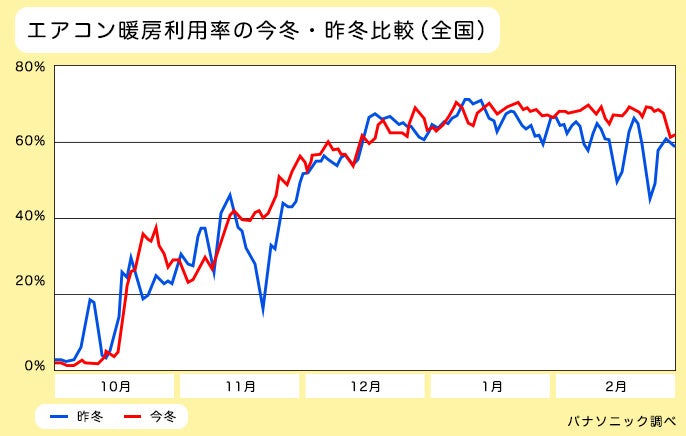 ●今冬のエアコン使用時間は、昨シーズンに比べ全国的に増加