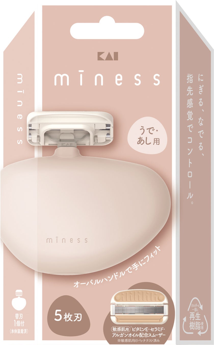 うで‧あしのムダ毛処理を目的とした替え刃式カミソリ。“シームレスフィッティングシステム®”により、やさしい肌あたりでなめらかな剃り心地のヘッドと、刃に対して左右に長く、毛流れに沿った剃り方がしやすいハンドル形状。手のひらで握る、指を沿わせるように持つなど、左右どちらの手でも様々な方向から持つことができる操作性が高いハンドル。