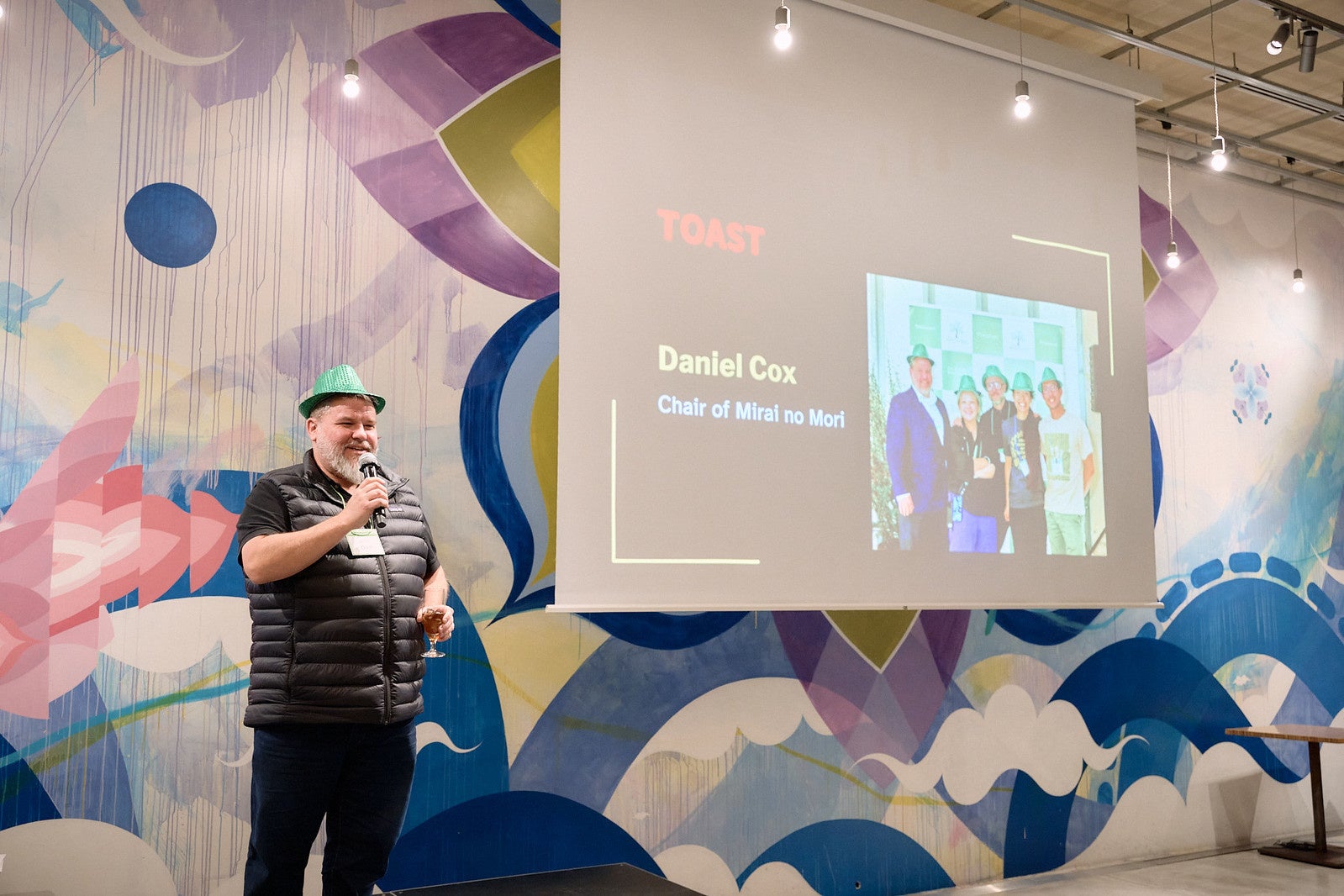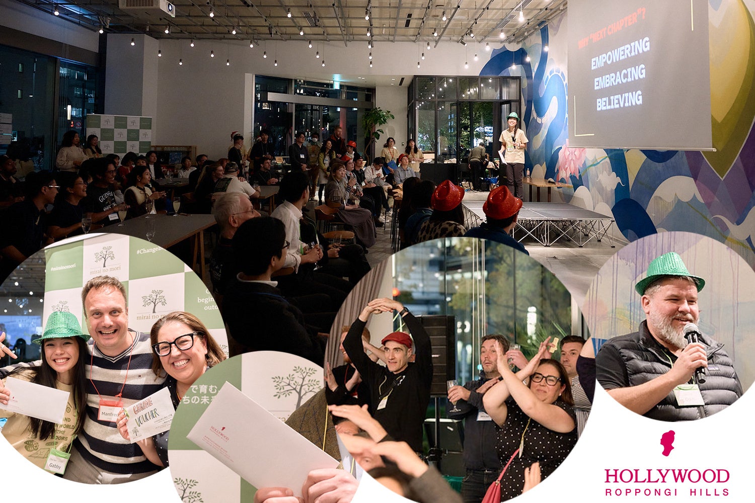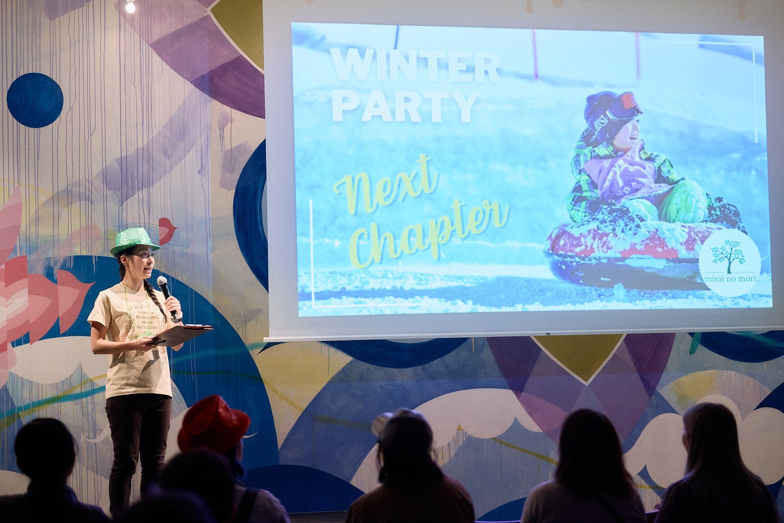 今年のパーティは「Next Chapter」で、みらいの森の最初の10年間の成果と、今後についてが語られました。成長の指針として、みらいの森のコア・バリュー「Empowering」「Embracing」「Believing」を新たに定めたことや、活動を拡大していく意気込みが発表され、参加者の賛同を集めていました。