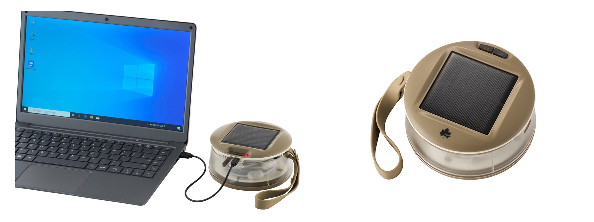 蓄電方法は、USB蓄電とソーラー蓄電の2パターンを装備しており、乾電池は不要なので便利です。また、環境にやさしいLEDを採用しているため長寿命かつ静かなほか、ヤケドや引火の危険がなくお子様とご一緒のアウトドアシーンでも安心して使用できます。