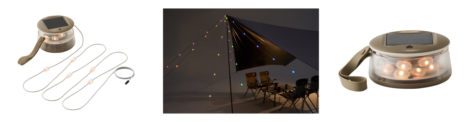 本アイテムは、アウトドアグッズから防災グッズまで展開する、野外でも使用可能な電化製品「野電」シリーズから登場した、テントやタープに吊り下げてキャンプサイトを装飾するのに最適なデコレーションライトです。