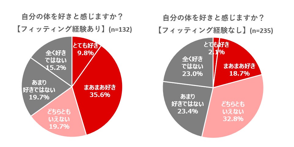 ● フィッティング経験者の半数が「自分の体が好き」と回答