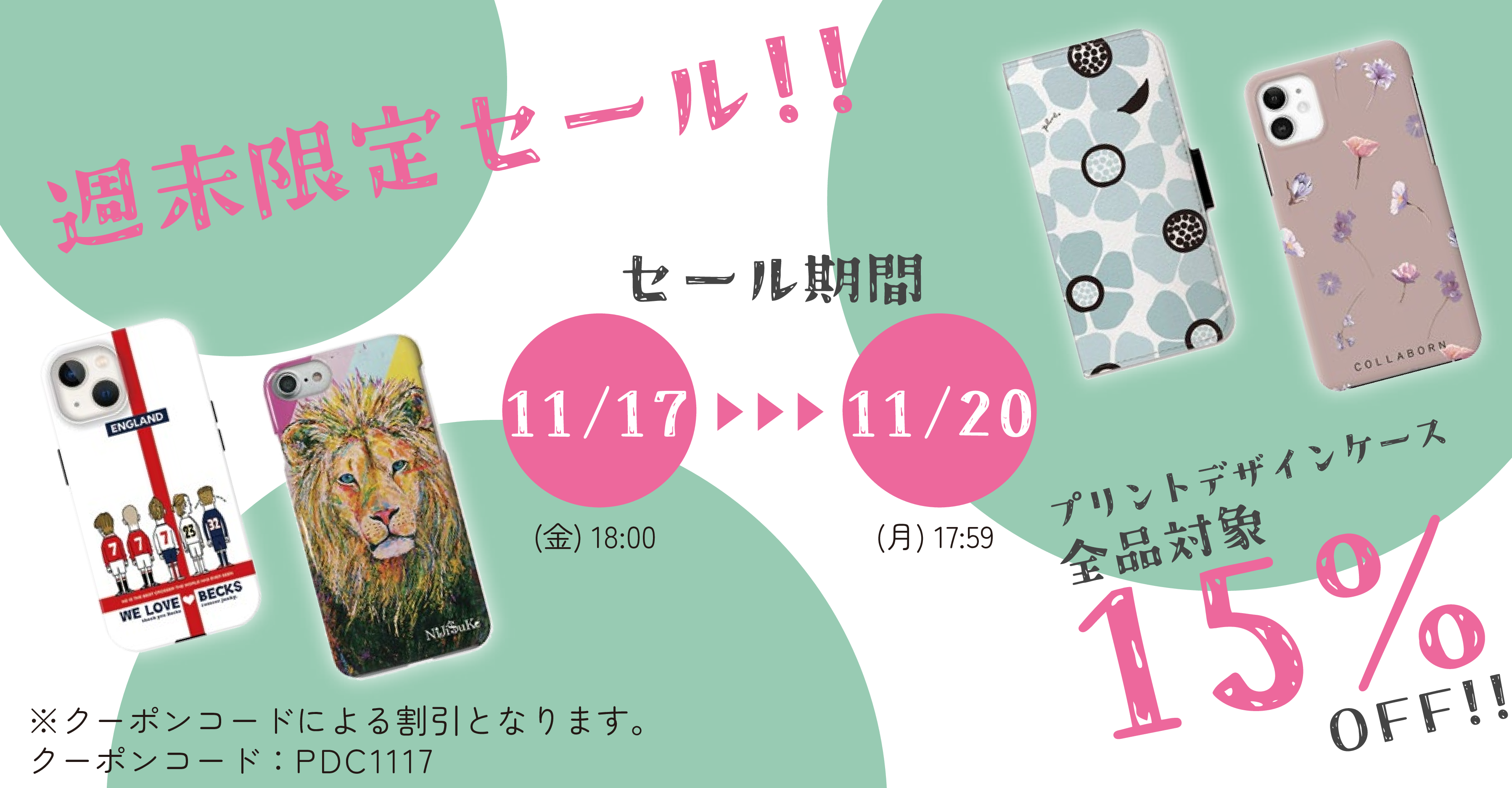 11/20(月) 17:59まで!プリントデザインケースが全品15%オフ。iPhone・Android 多数ケースお取り扱い中!