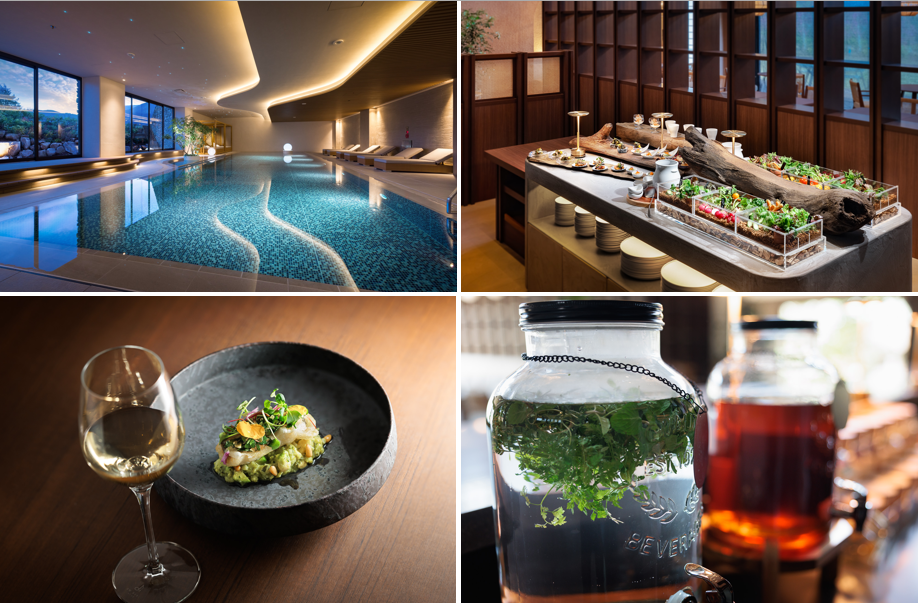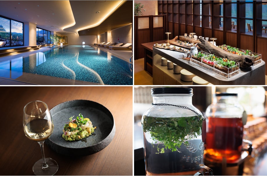 レストラン「crescita」、サーマルプール、サーマルルーム、温泉大浴場、ドライサウナ、ととのいテラス、