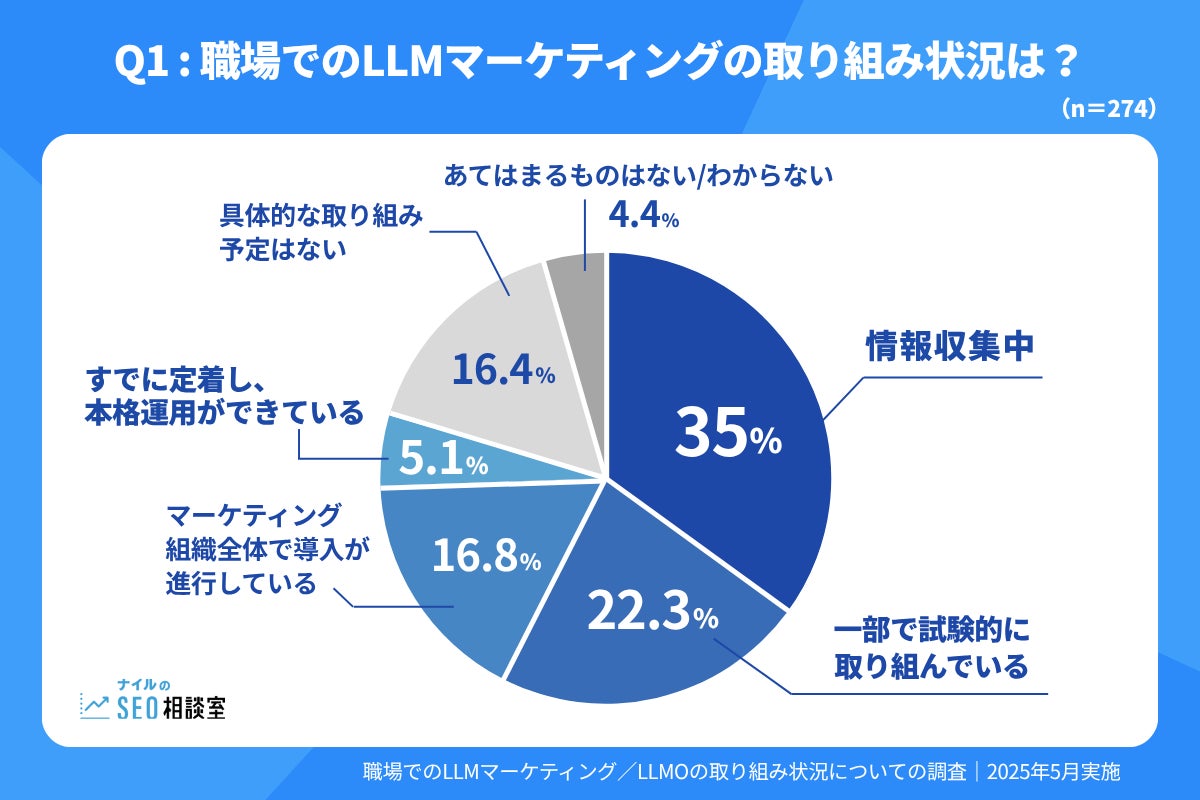 企業のデジタルマーケティング従事者・男女274名を対象に、LLM(大規模言語モデル)マーケティングの導入状況に関するアンケート調査を実施しました。