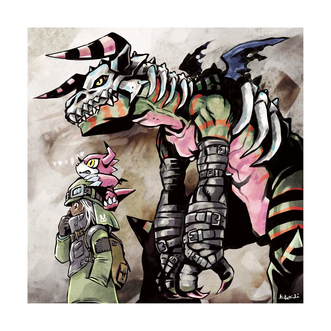 「どこまでも白く凍った大地、吹雪の中彼女たちは進んでいく。相棒のカイジュウは歴戦の傷と寒さにやられた身体を機械化して生きている。遠くに獲物の影が見えた。すかさず少女は銃を構え撃つ。命中だ。いつかこの凍てつく大地を抜け出る日のために、ふたりは雪原をいく…。(渡辺)」B3サイズ、額装なし、サイン有。