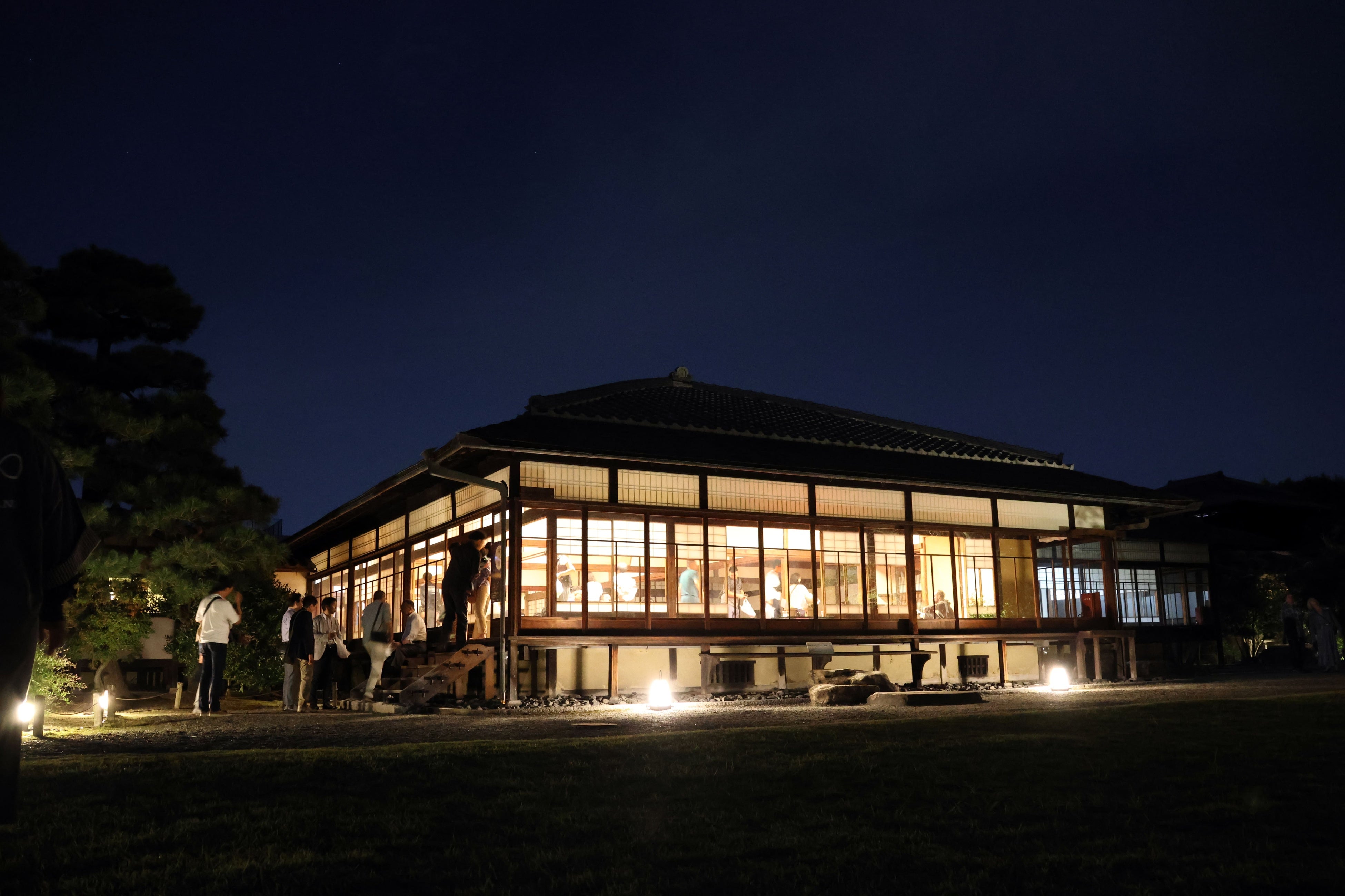 ・通常非公開となる夜間の渉成園にて、月明かりの庭園散策や月夜の小舟演出