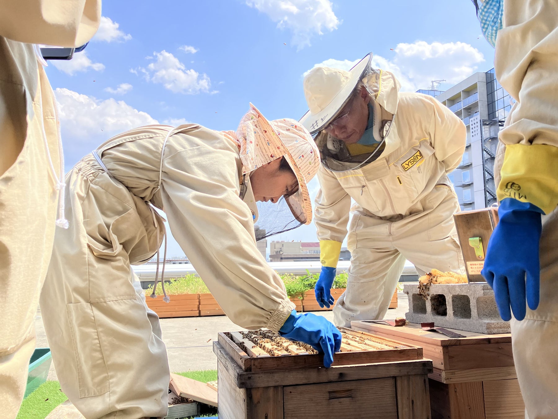 「おひがしさん門前未来プロジェクト」の一環で、2025年6月にプロジェクトメンバーによる渉成園での梅狩りを実施。当ホテルでは計約25kgの梅を収穫し、シロップに加工しました。また、当ホテルでは、2021年5月よりホテル屋上にミツバチの巣箱を設置し、「都市養蜂プロジェクト」を行っています。ミツバチは半径2~3km圏内にある京都市内の樹木、植木、花など身近な蜜源から蜜を運ぶため、「渉成園」の梅の実も、当ホテルのミツバチの活動によって受粉が行われた可能性があります。