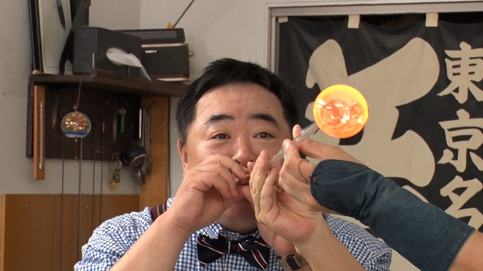 江戸っ子な職人たちの軽妙なトークに、タジタジな塚地もいざ風鈴作りに挑戦!