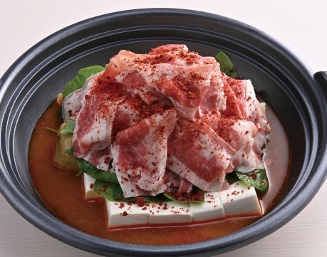 ”豆富”のまろやかさ、”じゃがいも”のホクホク感、そして韓国風のピリ辛スープが絶妙な”旨辛鍋”です。