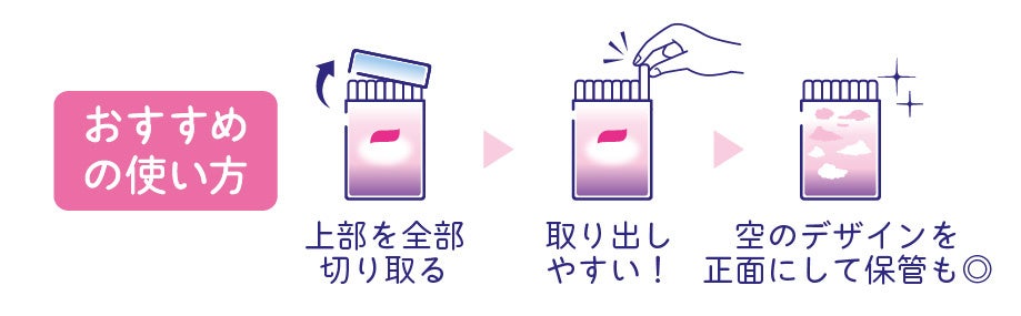 ・パッケージの上部にはミシン目を入れ、商品がさっと取り出せるように設計しています。