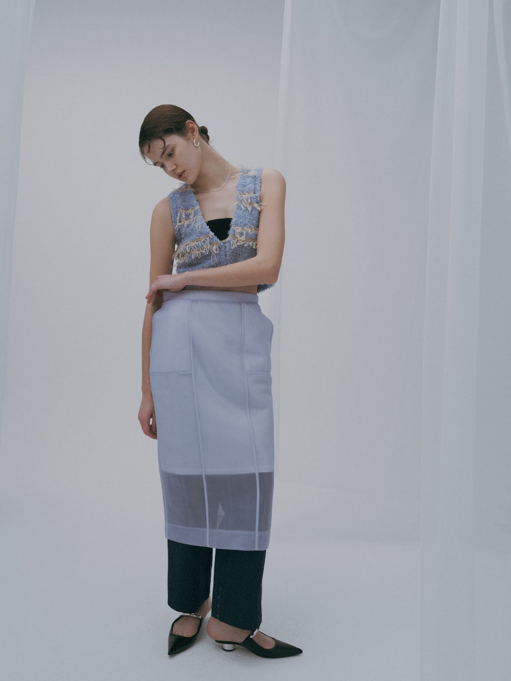 ナチュラルな素材や手仕事が伝わるステッチや刺繍のアイテムに、クリアで瑞々しいシースルー/ビジュー/シャンブレーのアイテムでミックスマッチなスタイルを提案します。