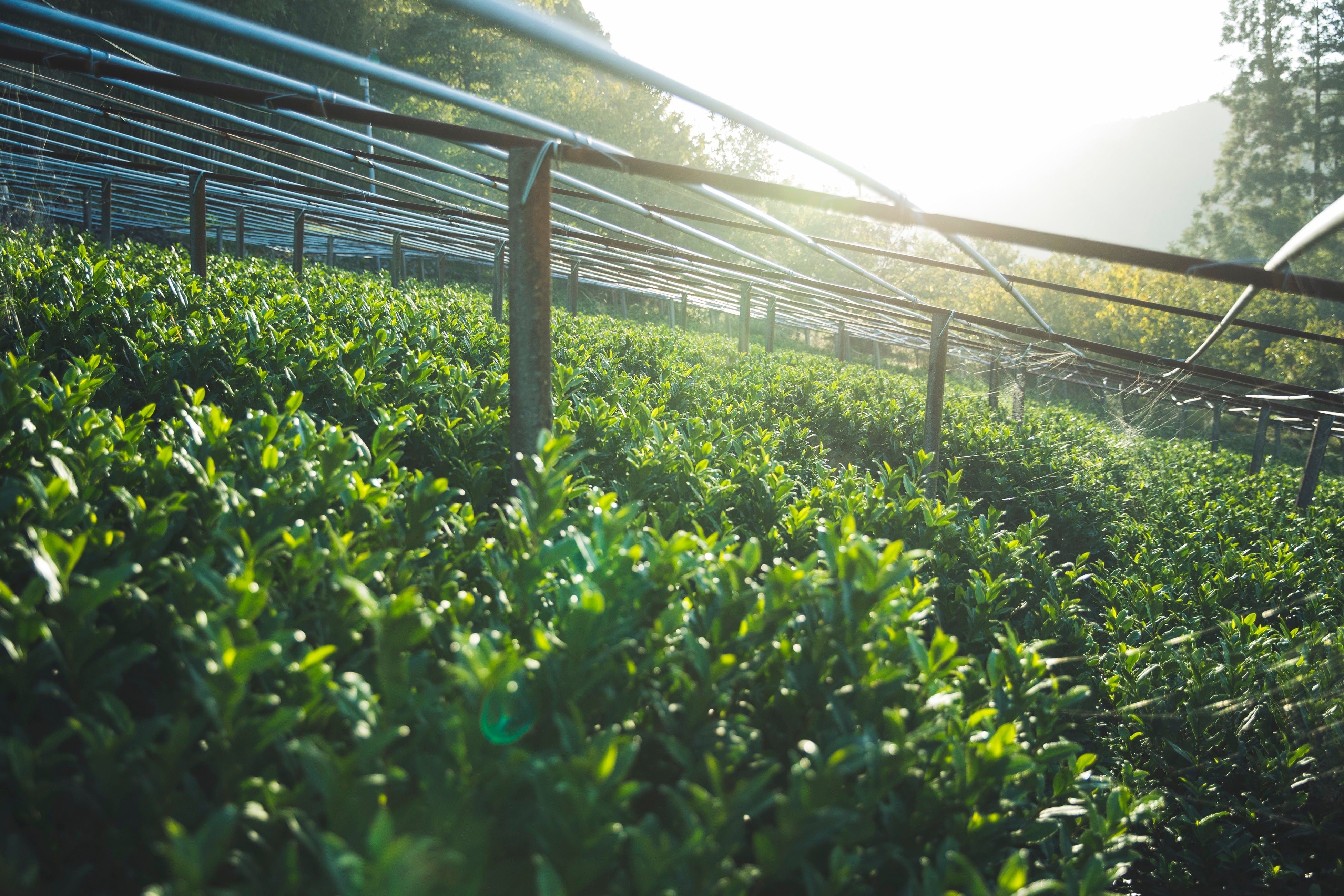 全国茶品評会で「玉露産地賞」を21年連続最高賞を獲得する、日本一の玉露。日射量の少ない山間の畑で、あえて茶樹の枝を剪定しない「自然仕立て」で栽培。茶樹にあたる日光を避けるために茶園全体に覆いをかぶせるのが特徴で、これによって緑茶の旨み成分であるテアニン(アミノ酸の一種)を増加させ、特有のとろりとした甘みが生み出されます。あえて手のかかる伝統的な方法にこだわり、美しい見た目、複雑で深い旨み、独特の爽やかな香りを追求しています。