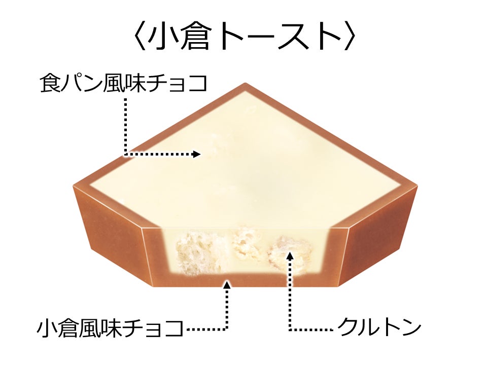 カリカリ食感のクルトンを小豆風味チョコと食パン風味チョコで包みました。