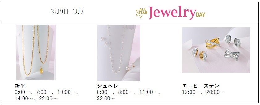 ジュエリー・ファッション・グルメ・ビューティー・ホームの5ジャンルを日替わりで特集、人気の高いアイテムを厳選してご紹介します。