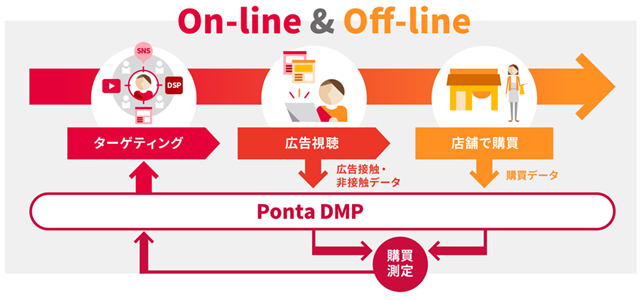 「Ponta Ads」は、共通ポイントサービス「Ponta(ポンタ)」の利用から得る、日常生活のオフラインでのリアル購買データとデジタル広告を接続して配信・分析するマーケティングサービスです。
