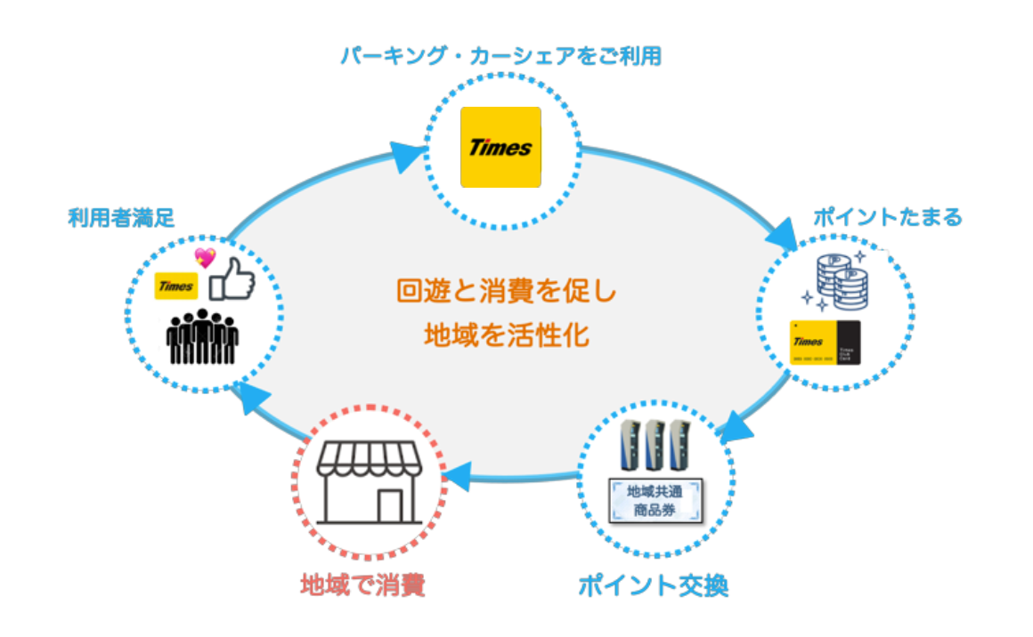 タイムズ24はこれまでにも、タイムズパーキングやカーシェアリングサービス「タイムズカー」などのご利用でたまったタイムズポイントを、付帯駐車場を管理する商業施設などの「施設商品券」に交換できるサービスを展開してまいりました。これにより、商業施設への送客を実現するなど駐車場管理にとどまらない付加価値をパートナー企業様に提供してまいりましたが、この度の地域活性化を目的とした地域内の店舗や施設で利用可能な「地域共通商品券」に交換できる取組みは初となります。