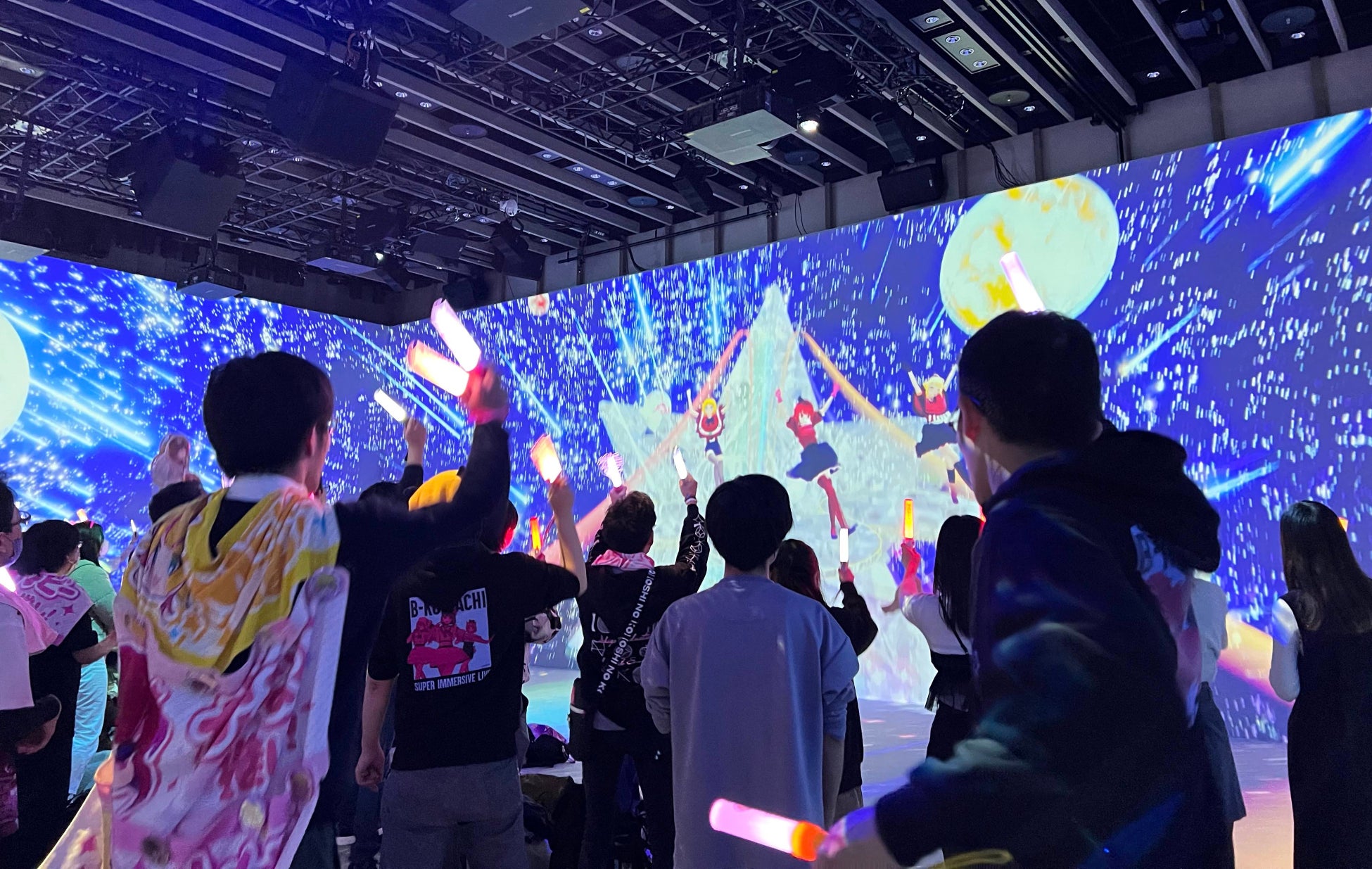 福岡公演で上映するタイトルは、『【推しの子】』スーパー・イマーシブライブ。周囲360°(4面)と床(1面)の全5面の空間に、プロジェクションマッピングやデジタル技術をフル活用して、イマーシブ(没入型)ミュージアム<マンガダイブ>を作り上げます。『【推しの子】』のキャラクターが躍動する“マンガ×音楽×ライブエンタテインメント”による新しいマンガ体験にぜひご注目ください。