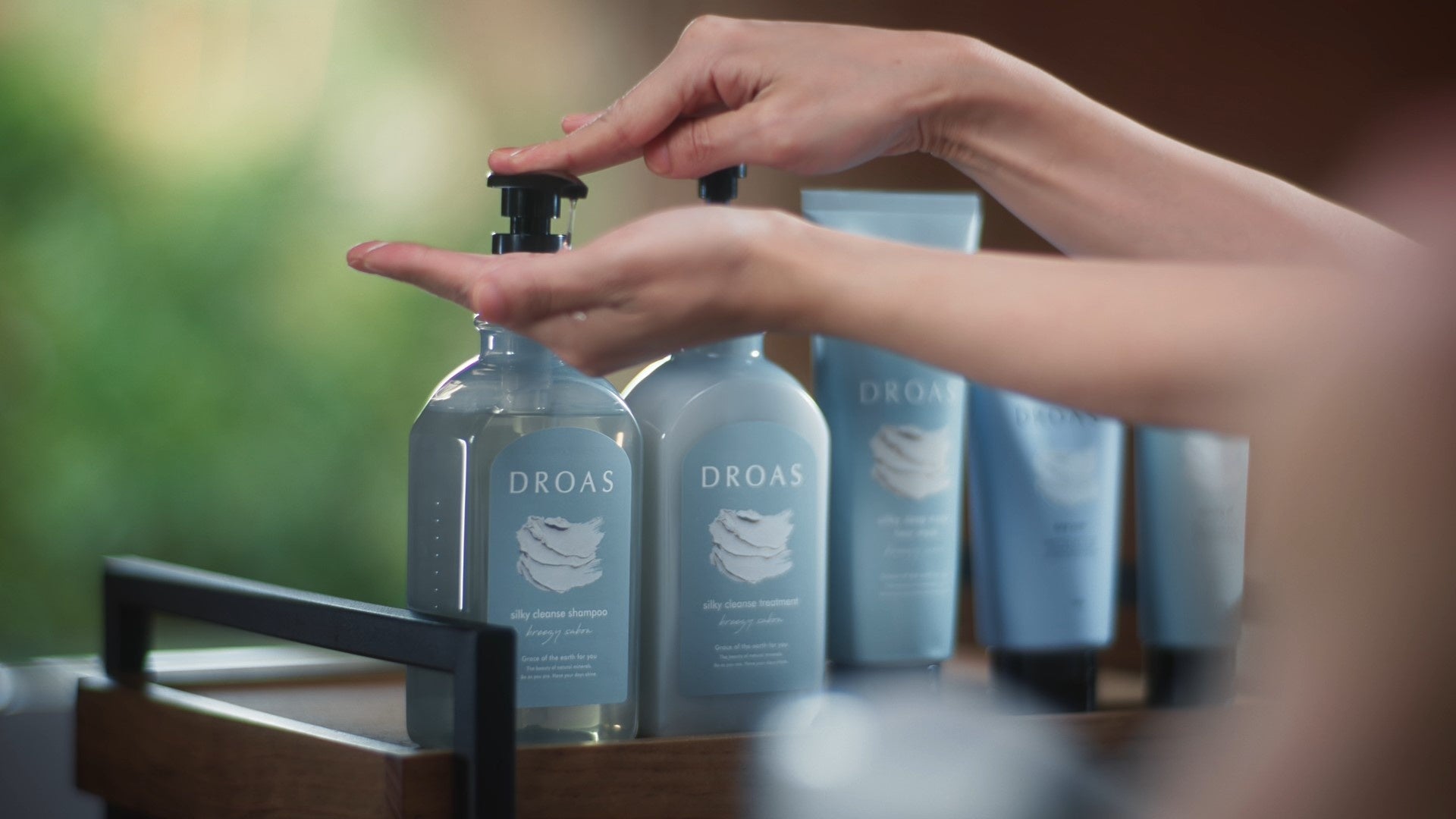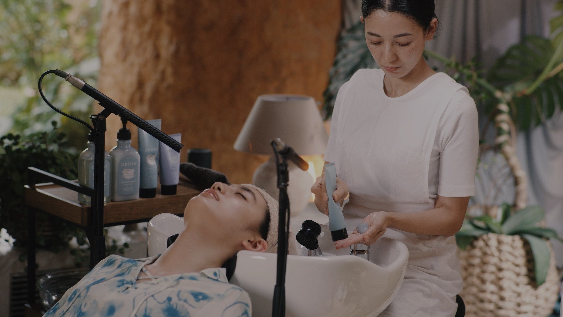 DROASのシャンプー、トリートメント、ヘアマスクを使った「泥の地肌ヘッドスパ」と、クレンジング、フェイスウォッシュを使った「泥の素肌スパスキンケア」を、ブランドアンバサダーの八木莉可子さんと一緒に体感していただけます。シャンプーを泡立てる音、濃密な泡で頭皮と髪を優しく洗い上げる音、シャワーで髪をすすぐ時の優しい水音、時折聞こえてくる虫の鳴き声や草木や風の音など、ASMRの心地良い音で、まるで実際にスパを受けているかのような没入感をお楽しみください。