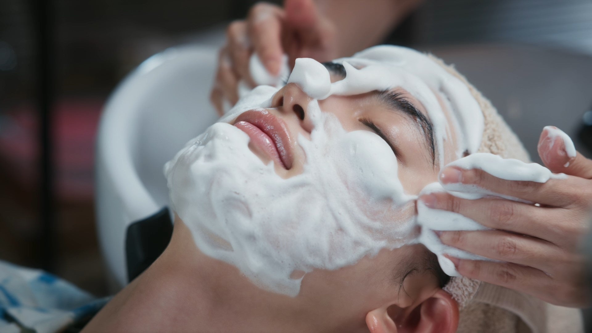 本動画では、八木莉可子さんがはじめての泥スパを体験する様子を、泥を混ぜる音や濃密な泡に包まれるシャンプーやフェイシャルスパ中の心地よい音と一緒にご覧いただけます。泥スパでまどろむ八木さんの表情にご注目ください。