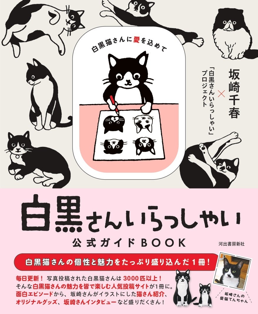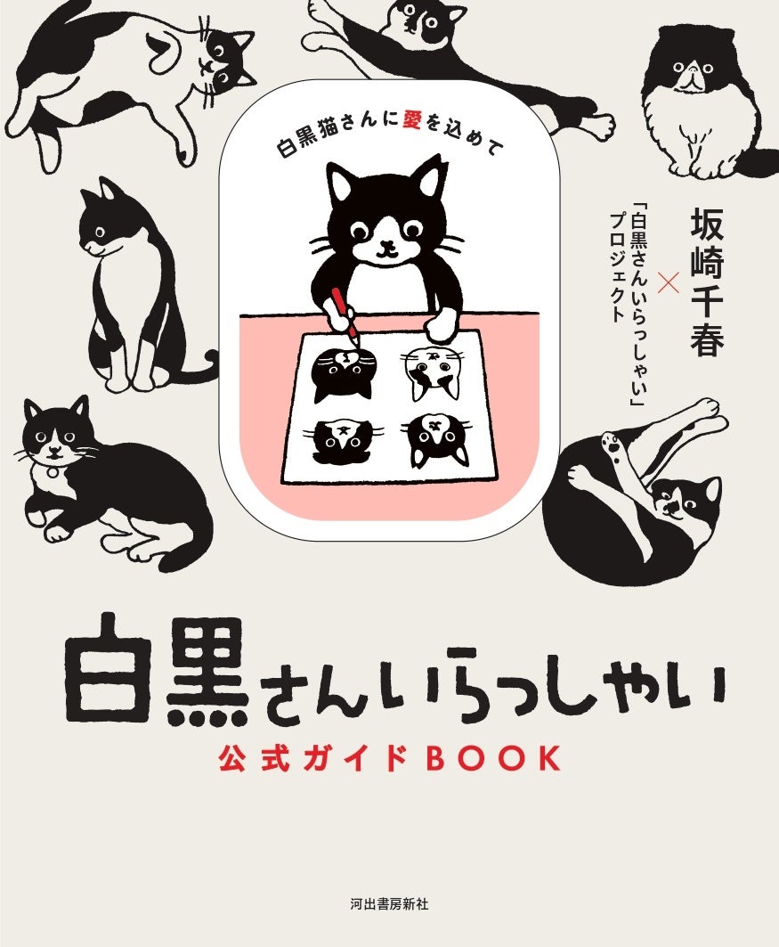 『白黒さんいらっしゃい公式ガイドBOOK』は、坂崎さんによるかわいい白黒猫さんのイラストはもちろん、スペシャルインタビュー、歴代の白黒さんグッズ、おもしろエピソードなど、「白黒さんいらっしゃい」の魅力をギュッと閉じ込めながら、本書ならでは要素も盛りだくさんの一冊です。