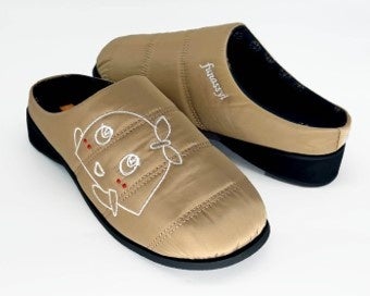 今回新発売となる商品は、近所のちょっとした外出時にも気軽に活用いただけるカジュアルな「サボシューズ」をご用意。毎日履きたくなるようなふなっしーの刺繍デザインをあしらい、内側にもふなっしーのデザインを入れることで、キュートで“推し”感満載のデザインに仕上げました。さらに、かかとにはふなっしーのモチーフ「梨」をワンポイント。かかとに厚みを持たせたしっかりデザインで、軽さと歩きやすさにも配慮しています。