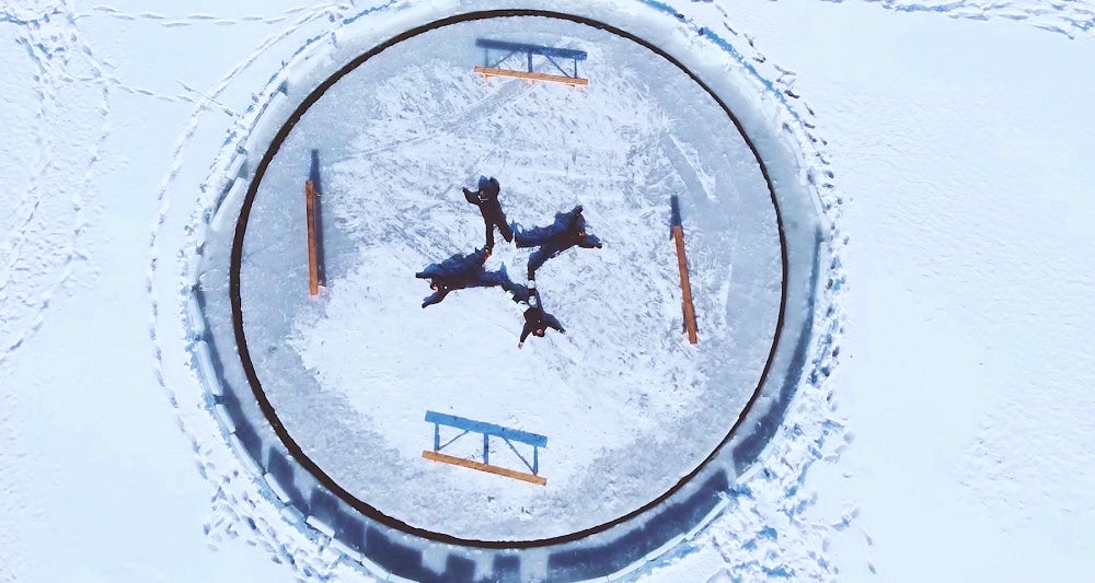 アイスサークルという、寒冷地でゆっくりと移動する水の上で起こるまれな自然現象を人工で再現した、冬ならではの遊びで、近年、フィンランドやアメリカ、カナダなどで行われてきました。