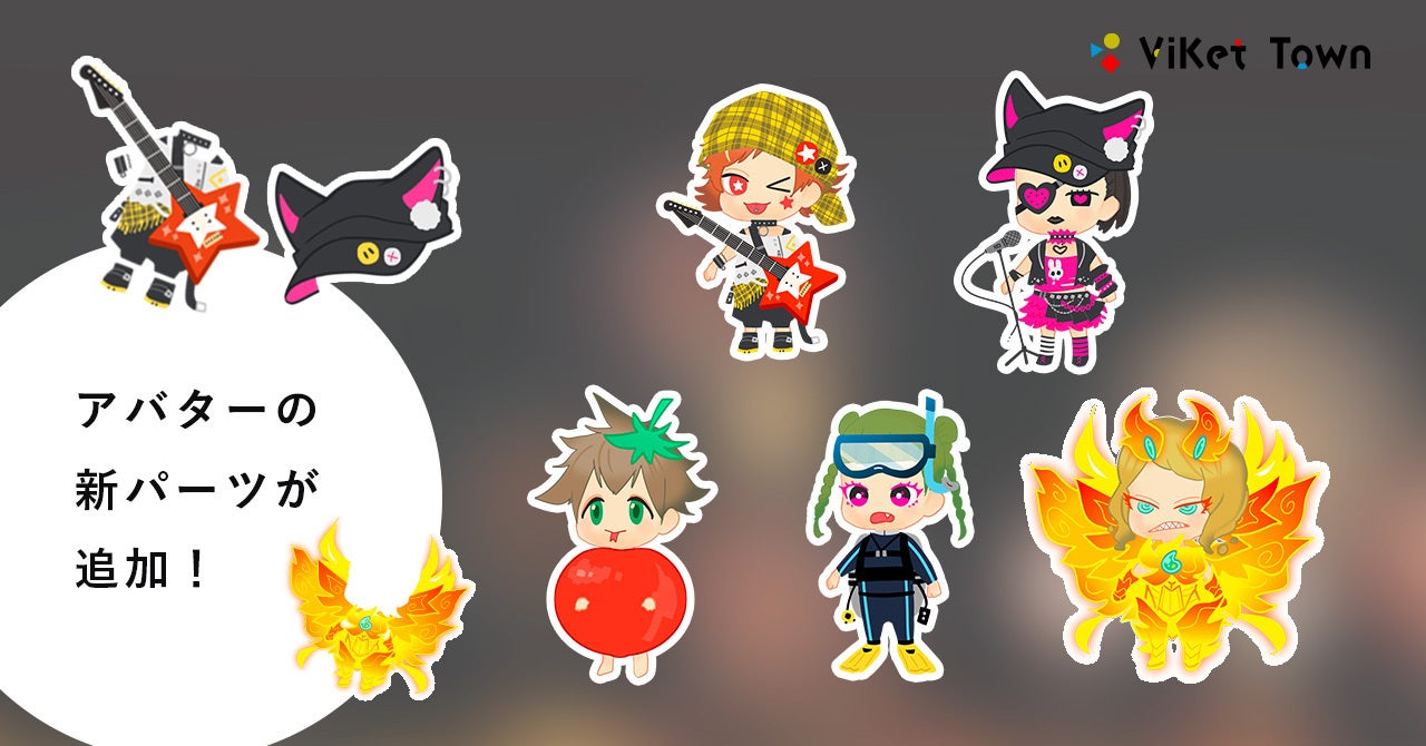 「ViKet Town(ビケットタウン)」では自分となって働くアバターが存在します。アバターには、頭、髪、目、口、服装、数種類の初期パーツから選択する事ができ、理想とする自分を生み出す事が可能です。 アバターを通してのコミュニケーションは、年齢、国籍、性別、見た目、生まれ持ったルーツによる様々な偏見をなくし、 純粋な気持ちで仲間とのプロジェクトの成功を目指す事ができます。 自分に自信がない人でも、働く新たな自分を生み出すことで、コミュニケーション能力の向上も期待でき、異空間で働くアバターは、様々なアイテムを身に着け、仲間とのコミュニケーションのきっかけともなります。夏といえばフェス!今回は、そんなアツい季節にぴったりのロックな衣装が登場。また、夏野菜なトマトの衣装や、ダイバー衣装、豪華な金色の衣装など夏!夏!夏!づくしとなっています。