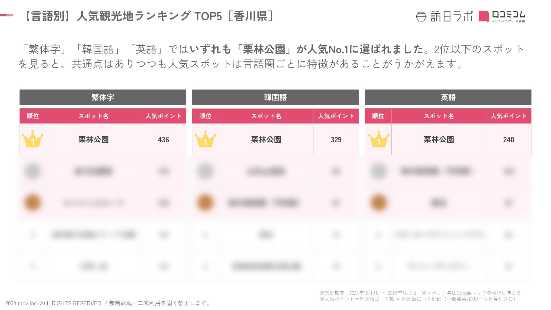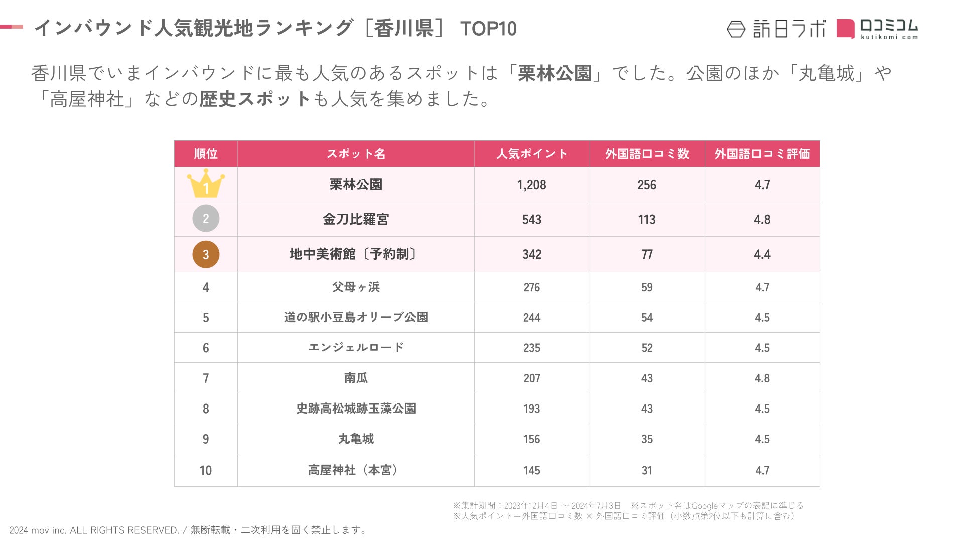 【独自調査】2024年最新:外国人に人気の観光スポットランキング[香川県編]1位は2年連続で「栗林公園」!| インバウンド人気観光地ランキング #インバウンドMEO