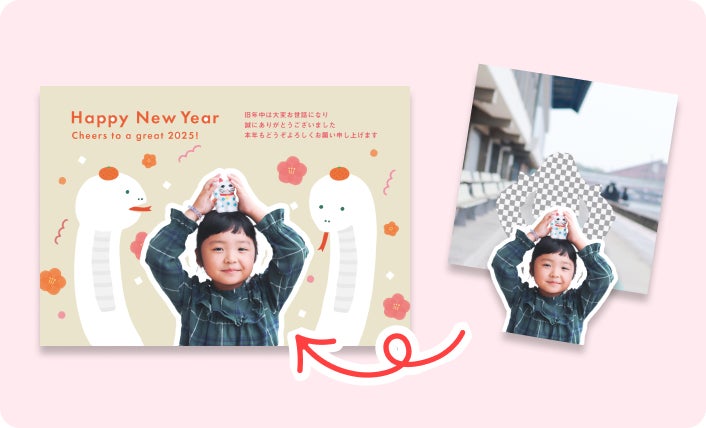 人物を自動で切り抜いて、自由にデコレーションできる機能です。お子様の写真を切り抜けば、