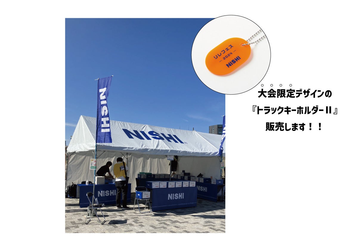 ニシ・スポーツのブースでは、キーホルダーやトレーニング用品の販売をします。