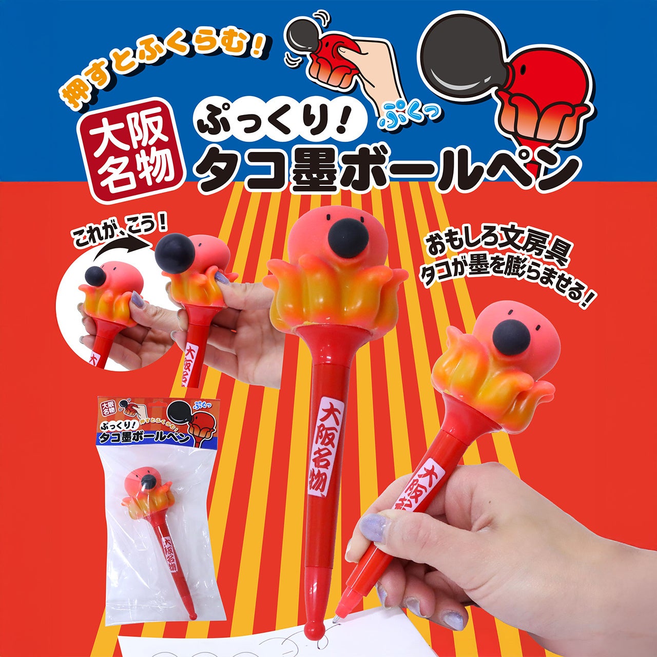 おもしろ文房具!タコが墨を膨らませる!「大阪名物 ぷっくり!タコ墨ボールペン」新発売