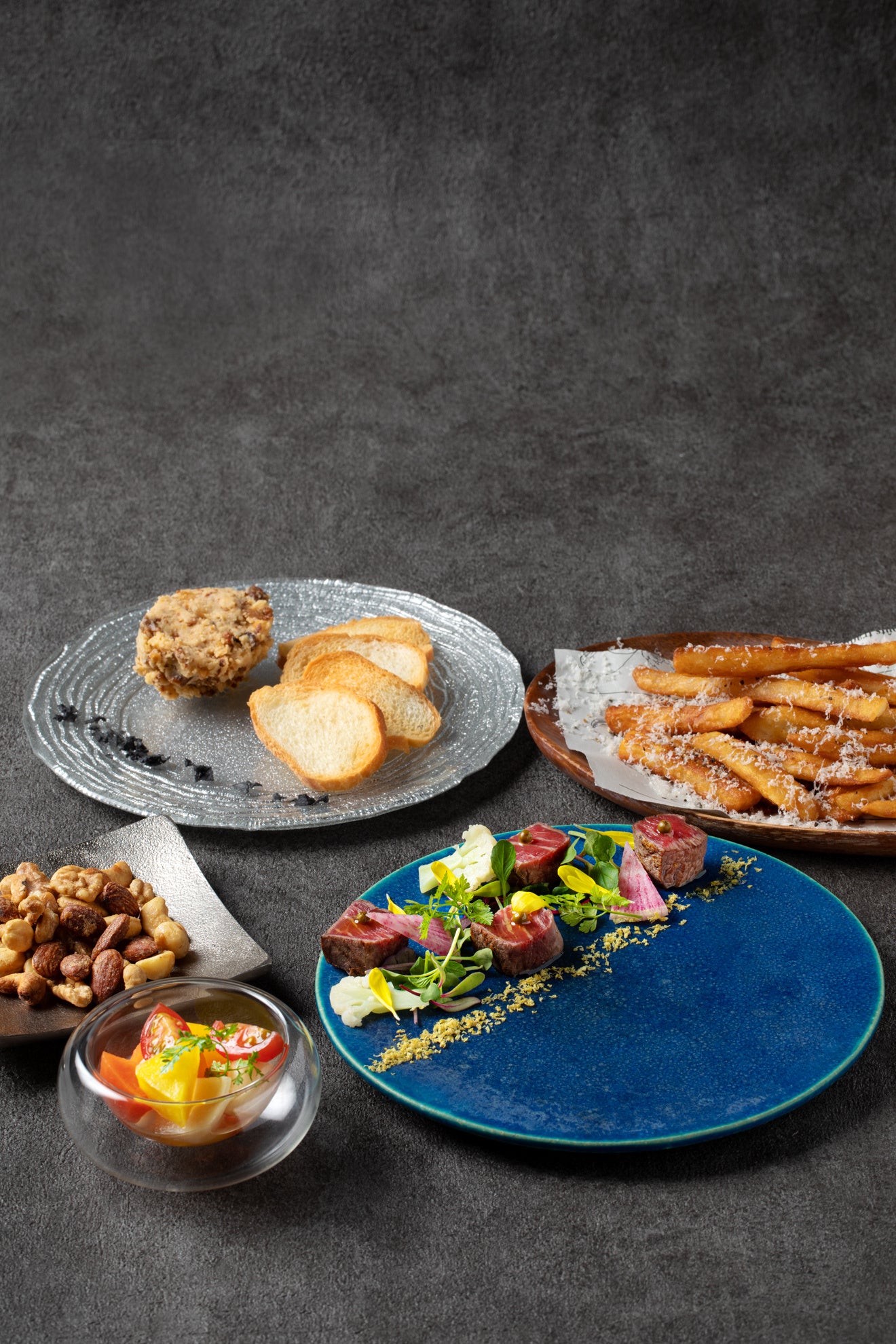 大人の夜にふさわしい、見た目も華やかなカクテルで深夜のバータイムを彩る。