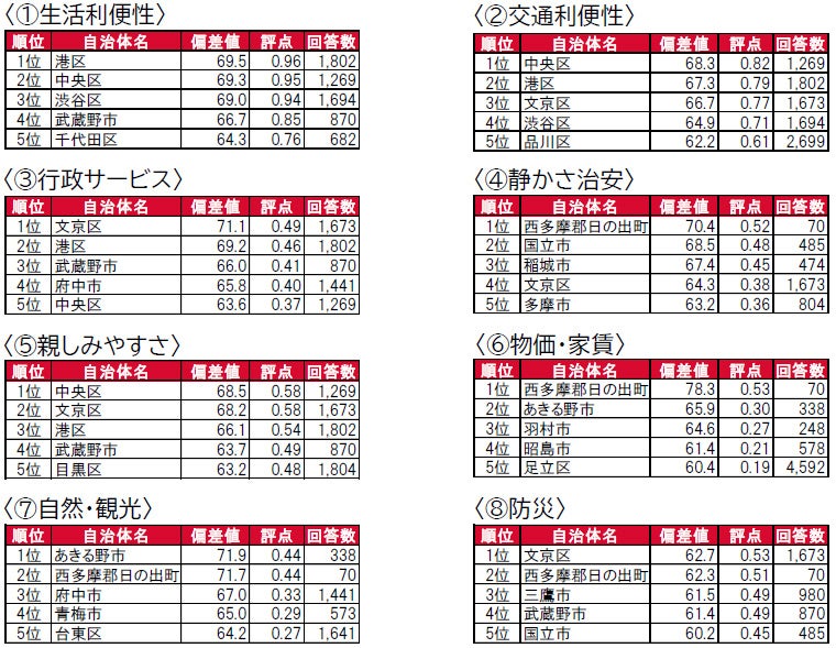 - 街の住みここち(自治体)ランキング<自治体:TOP20、因子別:TOP5>