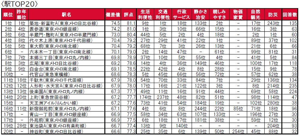 - 街の住みここち(駅)ランキング<駅:TOP20、因子別:TOP5>