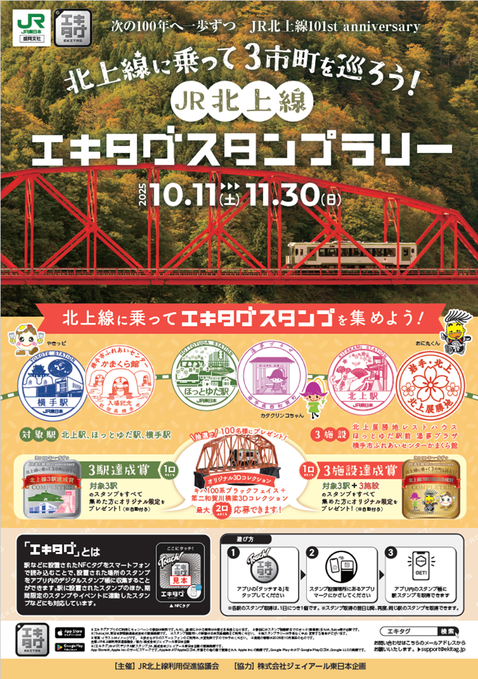 駅スタンプアプリ「エキタグ」「北上線に乗って3市町を巡ろう!JR北上線エキタグスタンプラリー」開催!