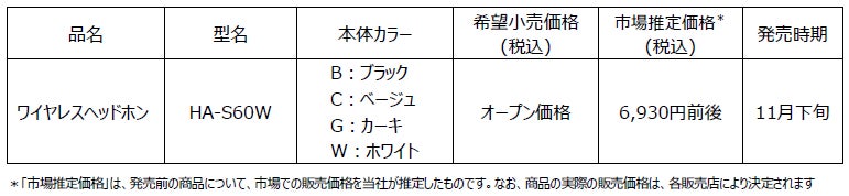 ワイヤレスヘッドホン「HA-S60W」を発売