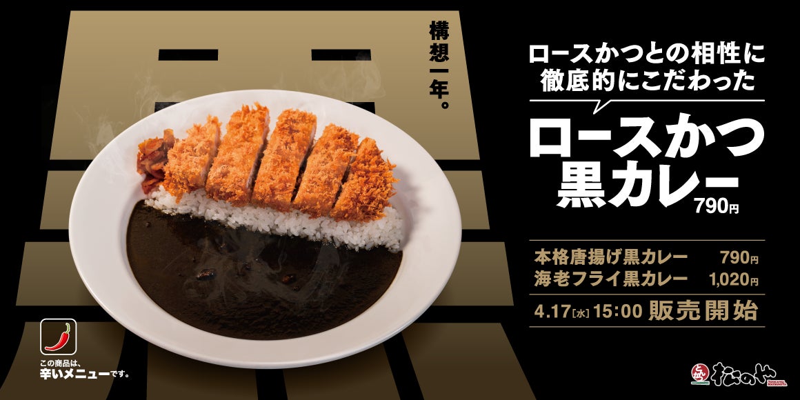 株式会社松屋フーズ(本社:東京都武蔵野市、代表取締役社長:瓦葺 一利)では、とんかつ専門店の「松のや」におきまして、2024年4月17日(水)午後3時より、「黒カレー」を発売いたします。