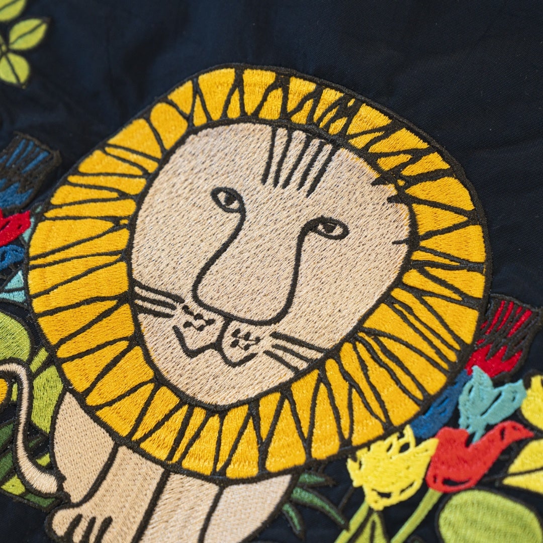 前回も好評を博したコラボレーションバッグが、新たなデザインで登場します。はりねずみとライオンのモチーフをあしらい、高級感のあるカラフルな刺繍が施された、持つだけで気分が上がるバッグです。