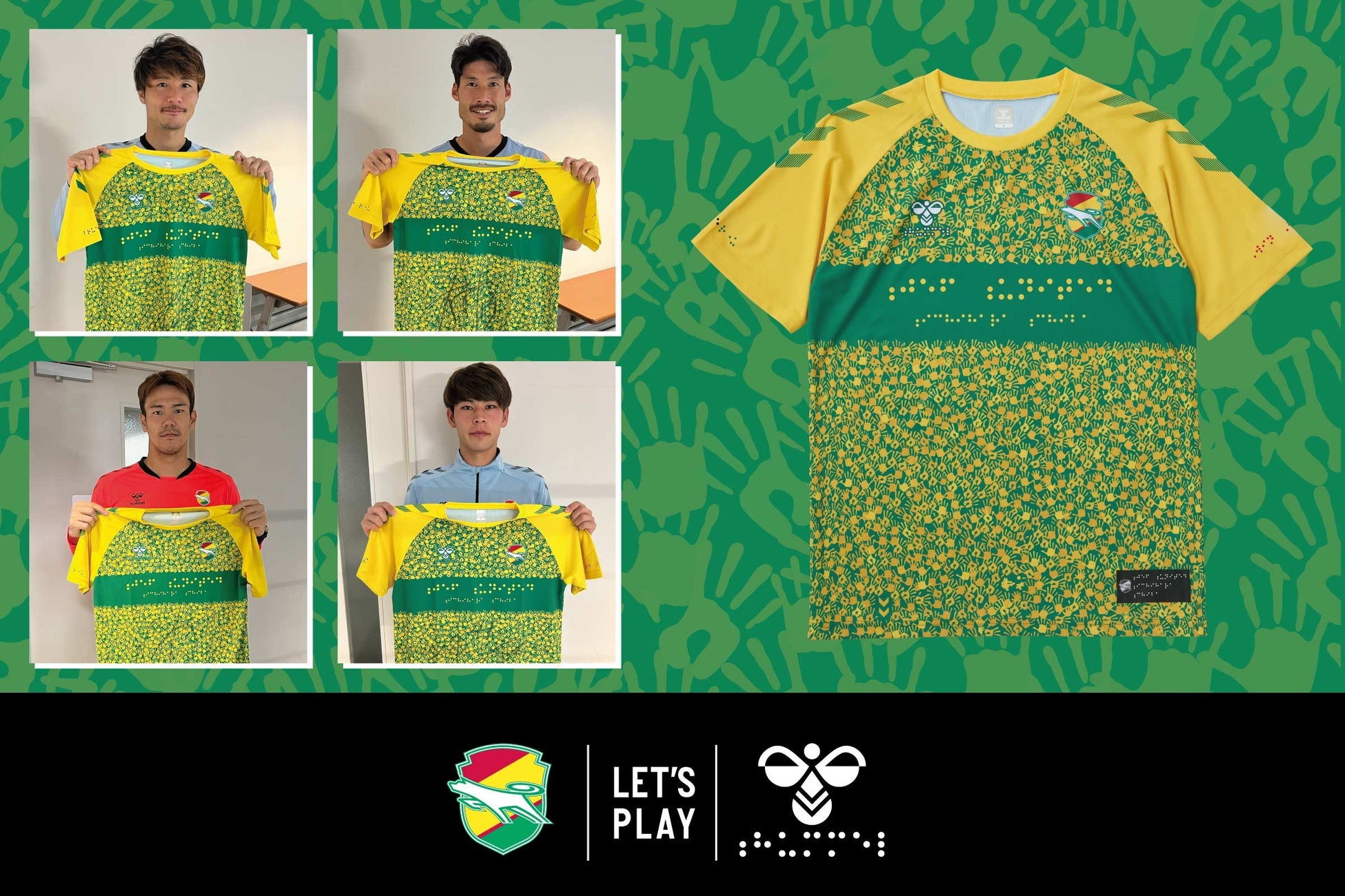 明治安田生命J2リーグ第36節となった9月23日には、選手がウォーミングアップや入場時に点字シャツを着用。デザインは、たくさんの応援する手のひらを重ね、スタジアムに喜びをつくり出す様子を全面にプリント。