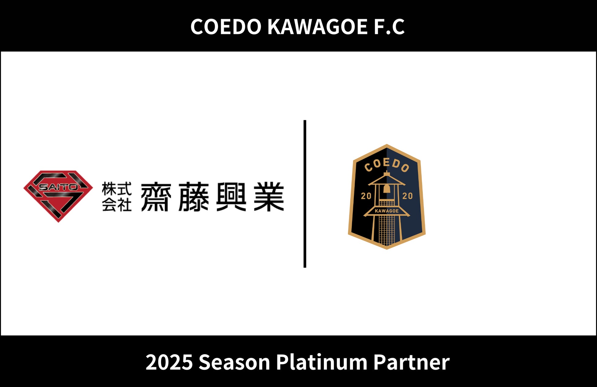 COEDO KAWAGOE F.Cを運営するCOEDO KAWAGOE F.C株式会社(埼玉県川越市、代表取締役 有田和生)は、関東一円で鉄筋継手工事、内装・外装工事を請け負い、また高坂駅周辺で「焼肉 DINING D」という焼肉屋も運営する株式会社齋藤興業(埼玉県比企郡吉見町、代表取締役 齋藤 ディエゴ カズミ)と、2025シーズンのプラチナパートナー契約を締結したことを発表いたします。