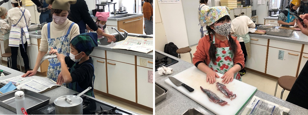 ⼩学3年⽣⼥⼦「あんなに大きい魚をはじめてさばいた。ハギのうす皮をむくところが難しかった」